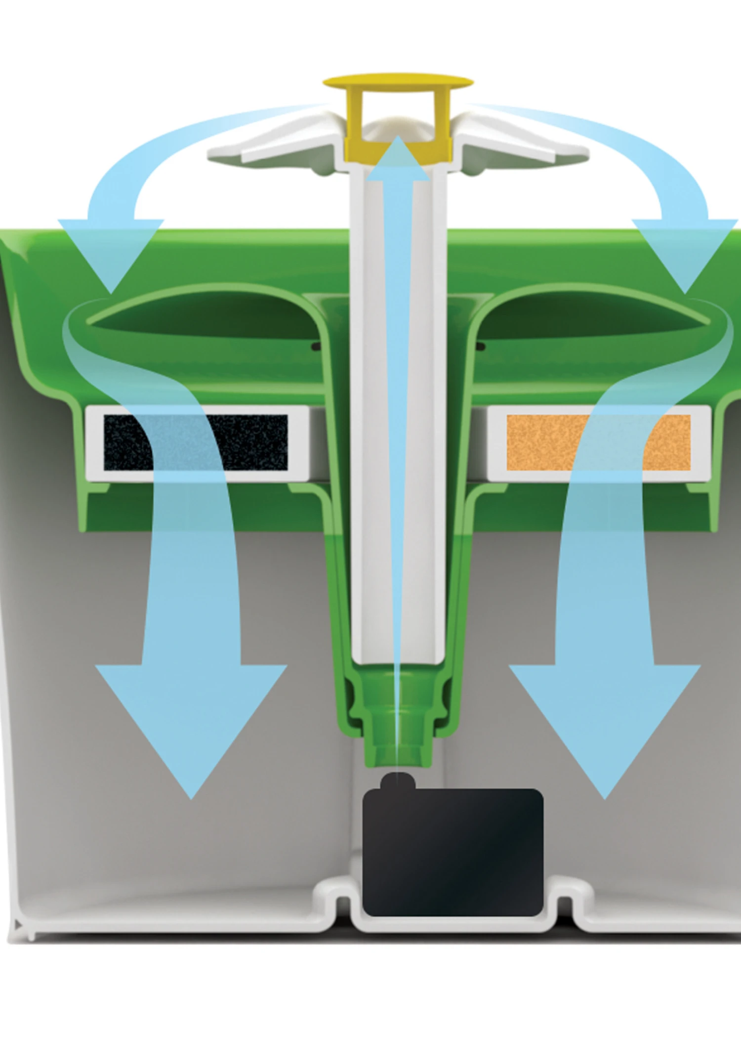 The flower is easy to add to (or remove from) the fountain. Unlike most drinking fountains, the Catit 2.0 Flower Fountain does not have a bowl to drink from, so dirt cannot accumulate in it. All water is filtered before it disappears into the reservoir, guaranteeing fresh drinking water at all times.