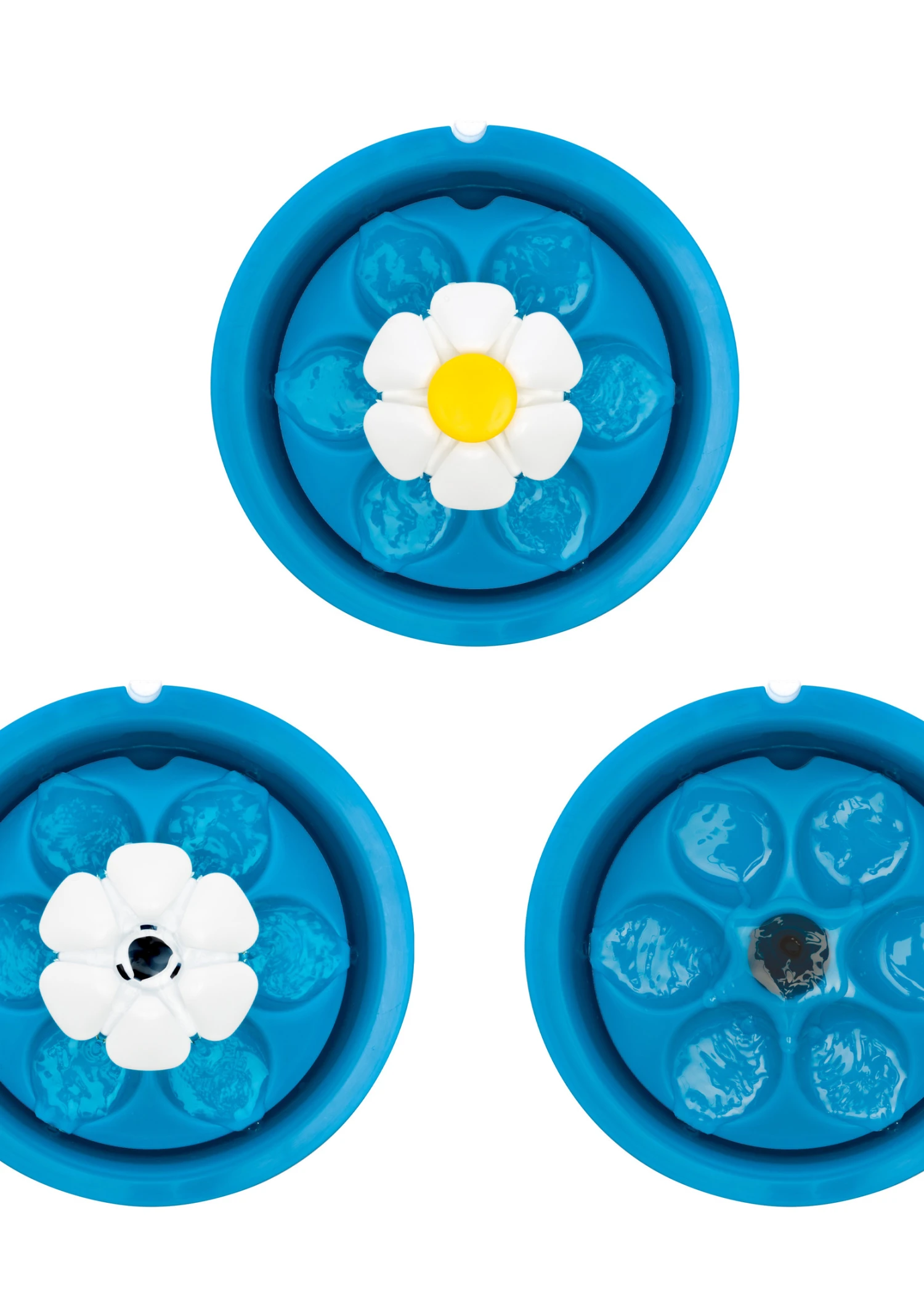 The Catit Flower Fountain LED allows up to 3 different water flow settings to appeal to picky drinkers! Cat owners can switch between gently flowing water, faucet-like streams of water, or streams of water with a bubbling top.