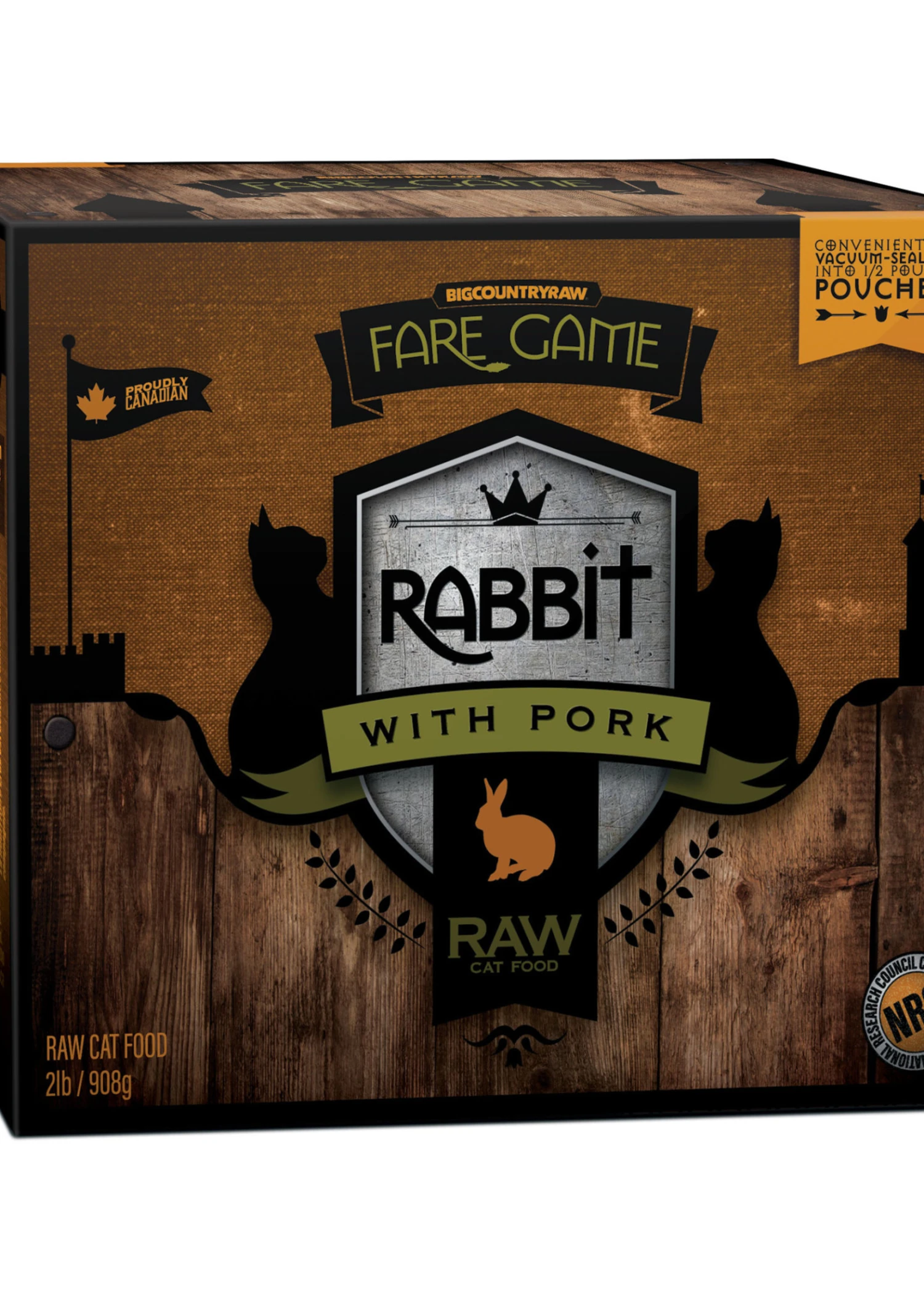 A blend of Canadian rabbit with pork organ meat with barley grass and wheatgrass. Packaged in ½ lb portions each 2 lb carton contains 4 vacuum-sealed packs.