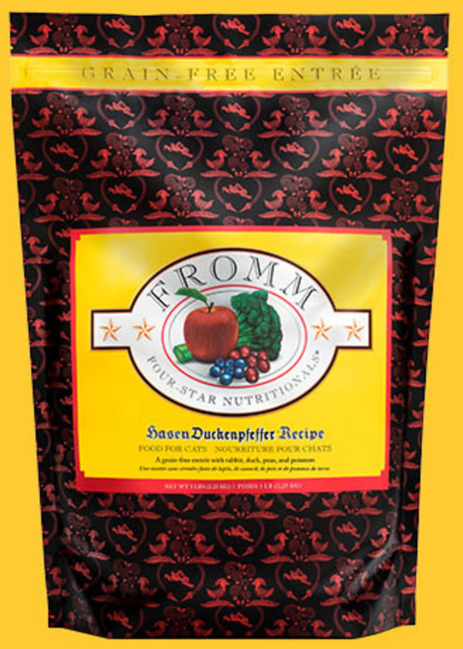 Rabbit, Duck, Chicken Meal, Dried Egg Product, Peas, Lentils, Chickpeas, Potatoes, Turkey Liver, Duck Meal, Chicken, Pea Protein, Dried Tomato Pomace, Chicken Fat, Salmon Oil, Pea Flour, Flaxseed, Natural Flavor, DL-Methionine, Carrots, Apples, Broccoli, Alfalfa Sprouts, Salt, Potassium Chloride, Chicory Root Extract, Vitamins, Minerals, Cranberries, Yucca Schidigera Extract, Sorbic Acid (Preservative), Taurine, Blueberries, Sodium Selenite, Probiotics.