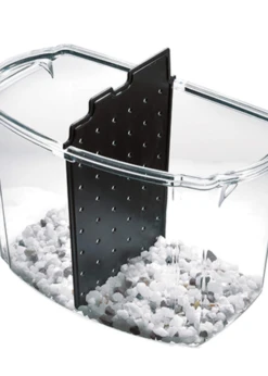 - Elevated bottom grill prevents litter spillage; keeps waste away from your pet