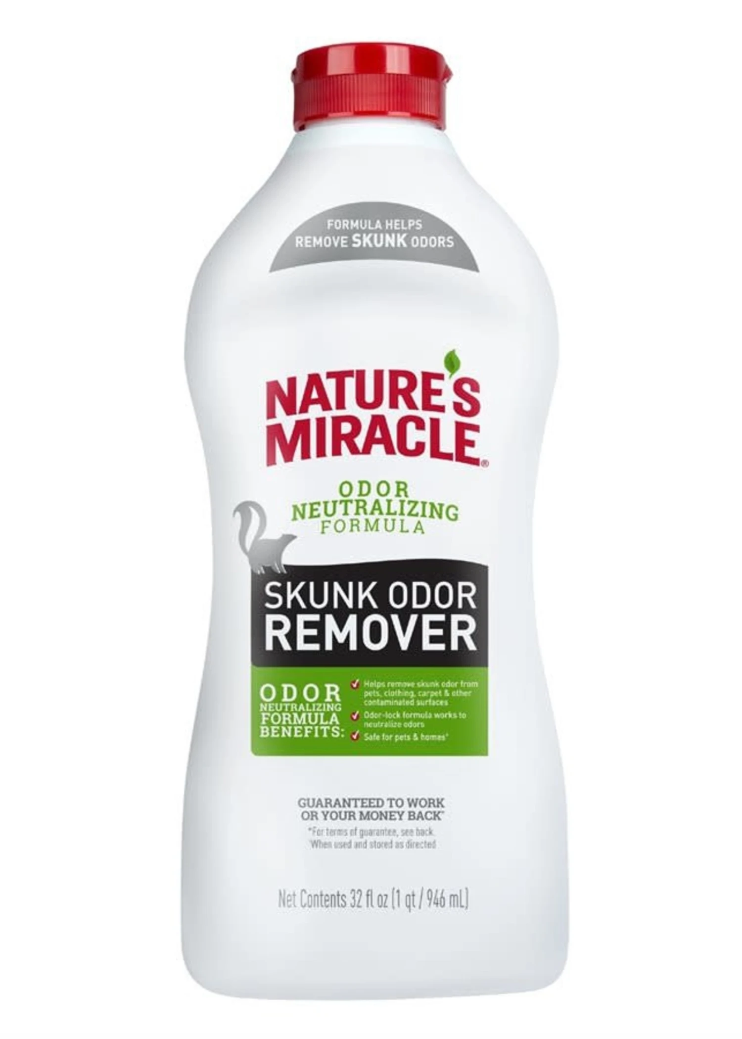 Removes skunk odor from pets, clothing, carpets and other contaminated surfaces
