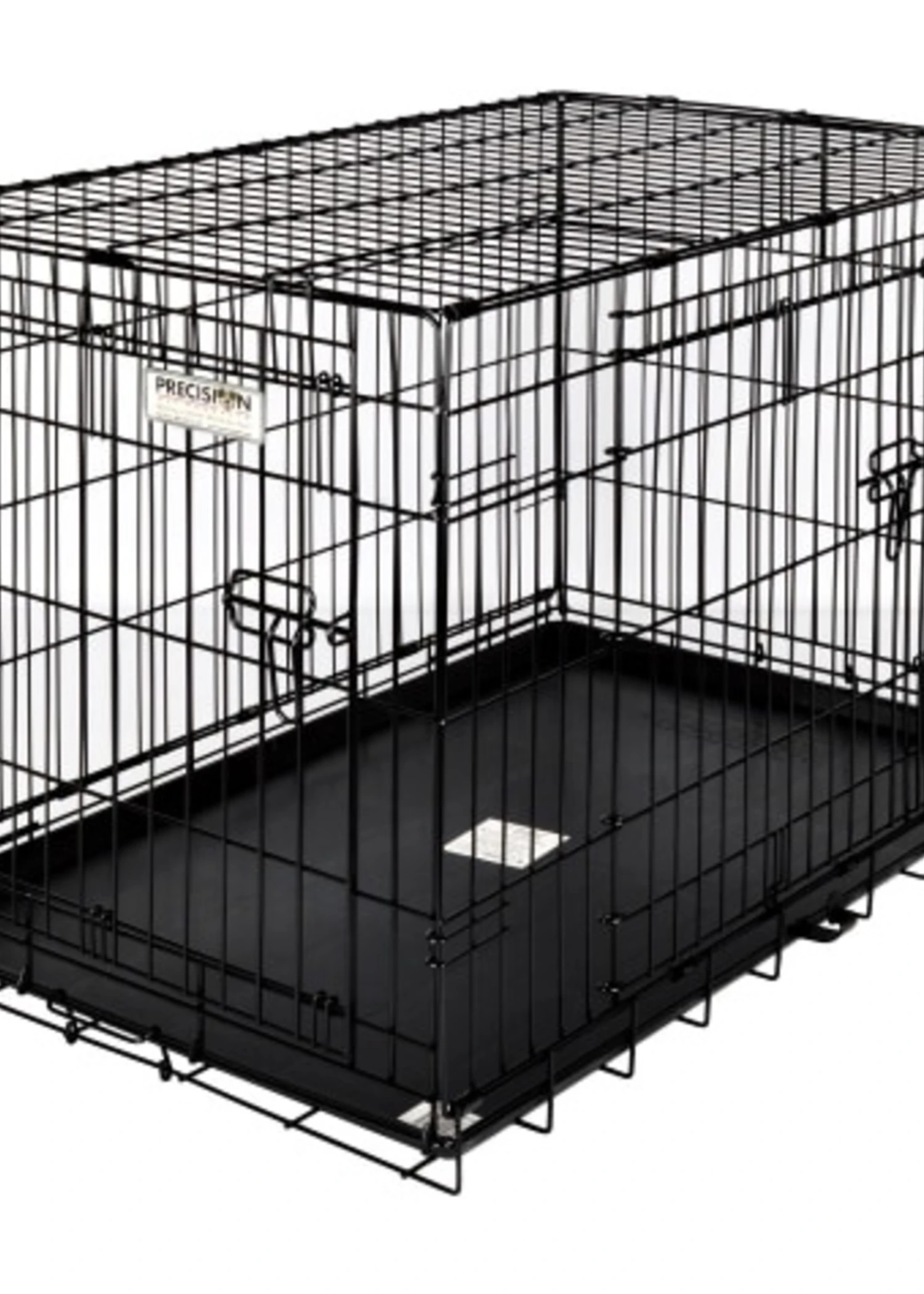 Keep your dogs safe and comfortable with Precision Pet’s® 2-Door Wire Crate for Dogs. Choose from an assortment of sizes to fit your puppy’s needs. Heavy-gauge wire with rounded corners and closer wire spacing makes this crate safer and stronger. A divider panel is included to easily adjust the crate as your puppy grows. Utilizes a patented 5-point locking mechanism to secure the door at five locations. The 2-Door Petmate Precision Wire Crate easily folds flat when not in use, and with an easy-carry handle, is perfect for storage or travel.
